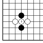 The above three diagrams, Diagram 4-13, Diagram 4-14 and Diagram 4-15, demonstrates cases when cutting is ineffective. Hence, we should avoid playing such kinds of moves. As for the opponent player, connecting the groups in these three diagrams are not needed – wasting moves as well.