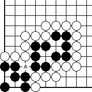 We take a look at Diagram 4-15 and we can see a cutting point at A. But it is useless for black to cut at A, as it simply introduce a dead black stone at A. To make things worse, if black really plays at A, white can just ignore and play elsewhere.