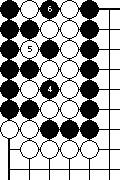 Diagram 5-6 shows a very small ko usually referred as the endgame ko. Apart from the benefit of capturing one stone there are no other benefits. Such a ko is best left to the end of a game to fight over.